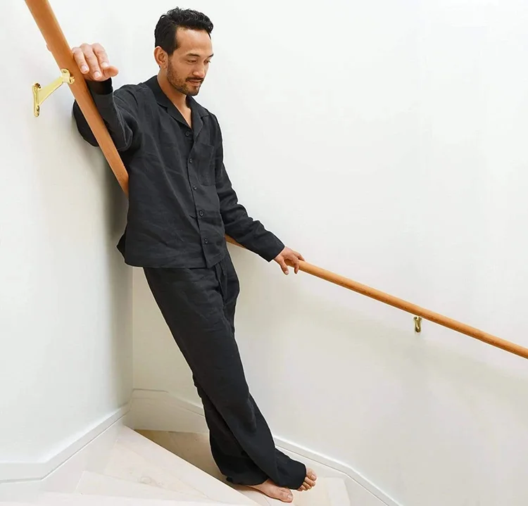 Linen Unisex Pyjamas Set with Pants men’s sleepwear 100% linen pajamas set sustainable pijamas hombre men’s classic linen pajama
